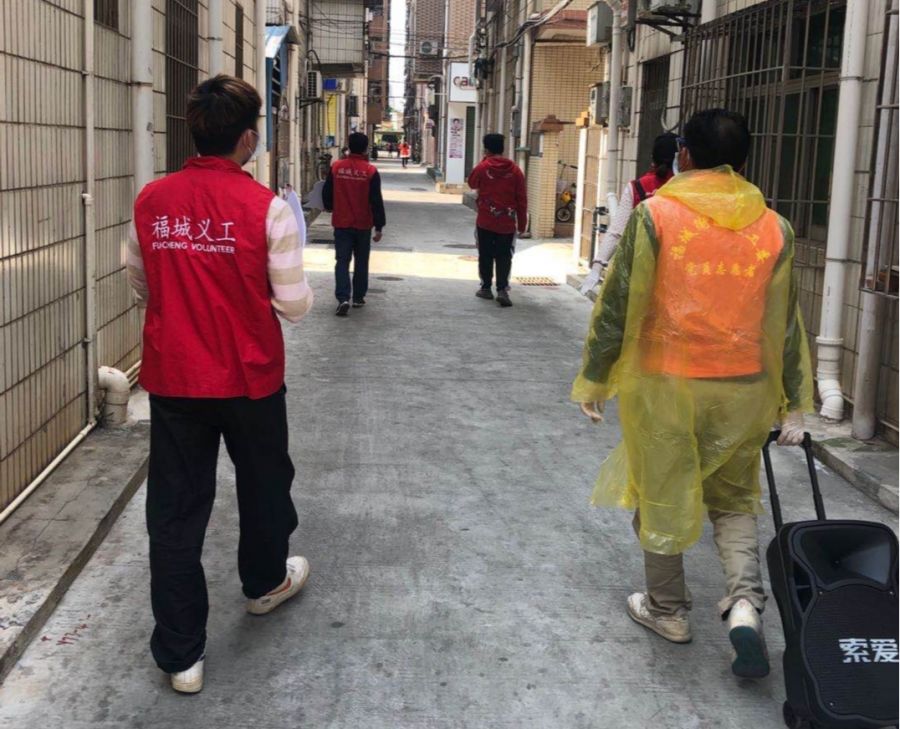 幫助老人填寫“i 深圳”、給來往居民測溫