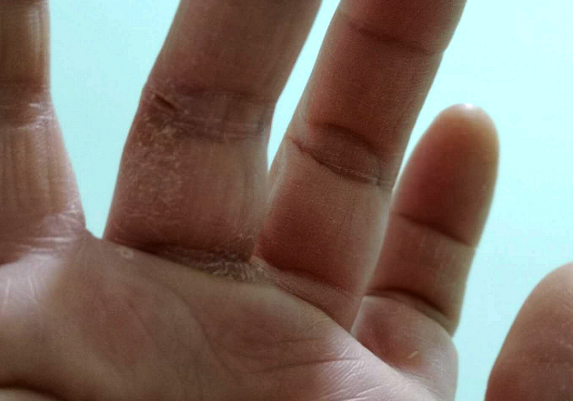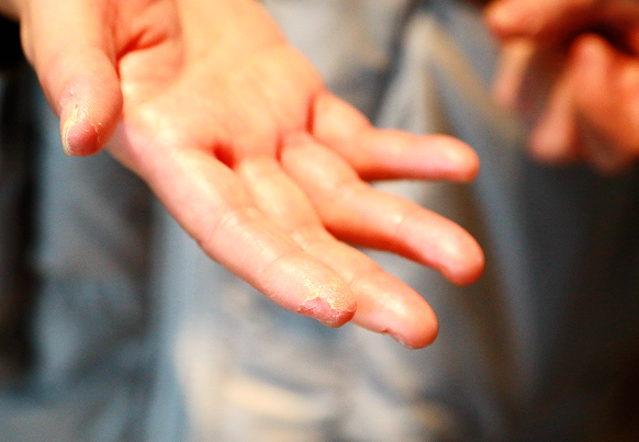 由于長(zhǎng)期近距離接觸患者,徐平每天不得不頻繁洗手、高頻率使用醫(yī)用酒精進(jìn)行手部消毒。這樣做的結(jié)果,就是手部皮膚干燥粗糙、皸裂。但她沒有辦法讓自己停下來,只要疫情還沒有結(jié)束,她就不可能停下來。