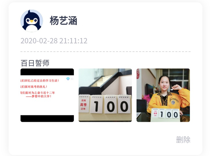 “生于非典,考于新冠,2020,我們注定不凡!疫情當(dāng)前,雖然我們隔離在家,不能像往屆那樣,齊聚學(xué)校體育館舉行誓師大會(huì),意氣風(fēng)發(fā)地走進(jìn)學(xué)校精心準(zhǔn)備的“成功門”,伴隨奮進(jìn)的樂(lè)聲高喊出我們的誓言,在“簽名紀(jì)念墻”上寫(xiě)下對(duì)未來(lái)的期盼。但即使相隔網(wǎng)絡(luò)兩端,我們依然有老師祝福和引導(dǎo),有家長(zhǎng)的鼓勵(lì)和支持,有同窗的幫助和陪伴,高考百日,我們?nèi)栽谝黄鹫癖鄹吆簦?020高考,我們準(zhǔn)備好了?!?/p>