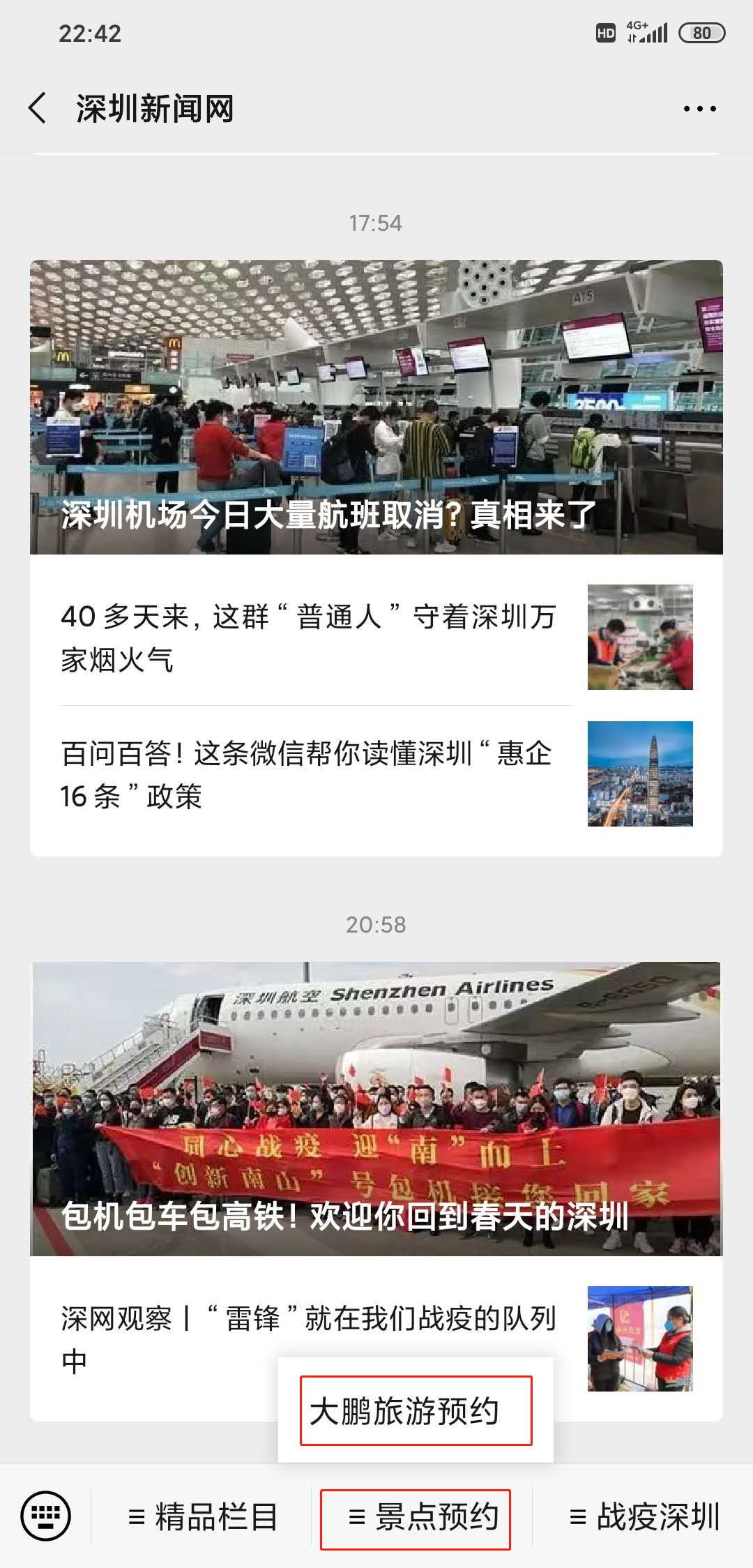 ⑨3月6日起至疫情防控期結(jié)束,配合大鵬新區(qū)兼顧疫情防控和旅游景區(qū)、住宿業(yè)發(fā)展的前提下,采取分類分步方式開放旅游景區(qū)工作,“疫情防控期大鵬新區(qū)旅游預(yù)約平臺”正式上線,即日起所有前往新區(qū)游客(含住宿與非住宿)出發(fā)前3至1日均需進行實名預(yù)約。(預(yù)約方式請見下圖)