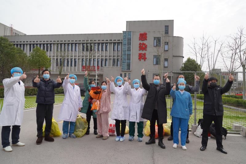 監(jiān)利縣人民醫(yī)院新冠肺炎患者出院時(shí)與醫(yī)護(hù)人員合影留念