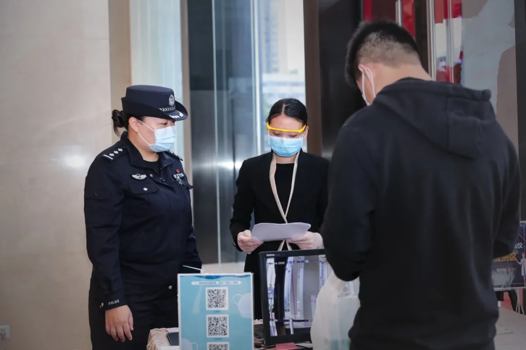 梅林店鋪約3000余家,隨著復(fù)工企業(yè)越來越多,防控工作也面臨不小挑戰(zhàn)。卓悅匯商鋪多、人流大,民警聯(lián)合街道、工作站、安監(jiān)等部門防疫檢查時,發(fā)現(xiàn)商場使用手持測溫儀,效率不高,易造成排隊聚集。為解決這個難題,田晶瑩多方奔走,聯(lián)合社區(qū)民警與商場負(fù)責(zé)人多次溝通。