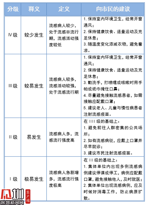 根據(jù)深圳市疾控中心發(fā)布的流感指數(shù)應(yīng)對(duì)指引,市民應(yīng)保持室內(nèi)環(huán)境衛(wèi)生,經(jīng)常開窗通風(fēng);保持健康飲食、適量運(yùn)動(dòng)及充足休息;勤洗手,打噴嚏或咳嗽時(shí)用手帕或紙巾掩住口鼻;盡量避免接觸流感患者,如需接觸應(yīng)配戴口罩;建議老人、兒童與慢性病患者注射流感疫苗。