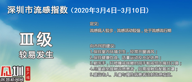 見圳客戶端·深圳新聞網(wǎng)2020年3月9日訊(見圳客戶端、深圳新聞網(wǎng)記者 劉夢(mèng)婷)根據(jù)深圳市疾控中心公布的深圳市流感指數(shù),3月份以來(lái),深圳均顯示為Ⅲ級(jí)(較易發(fā)生),目前深圳處于流感流行期,流感活動(dòng)較強(qiáng),流感病人較多。