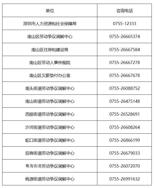 企業(yè)和職工均可致電深圳市南山區(qū)人力資源局(電話:26576148),咨詢(xún)用工過(guò)程中出現(xiàn)的問(wèn)題,區(qū)人力資源局將竭誠(chéng)指導(dǎo)服務(wù)。也可以按需求、分片區(qū),通過(guò)以下方式尋求幫助: