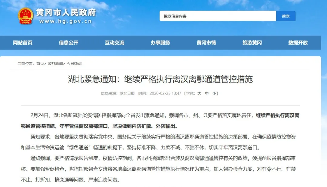 根據(jù)湖北的緊急通知,繼續(xù)嚴(yán)格執(zhí)行離武漢離湖北通道管控措施。