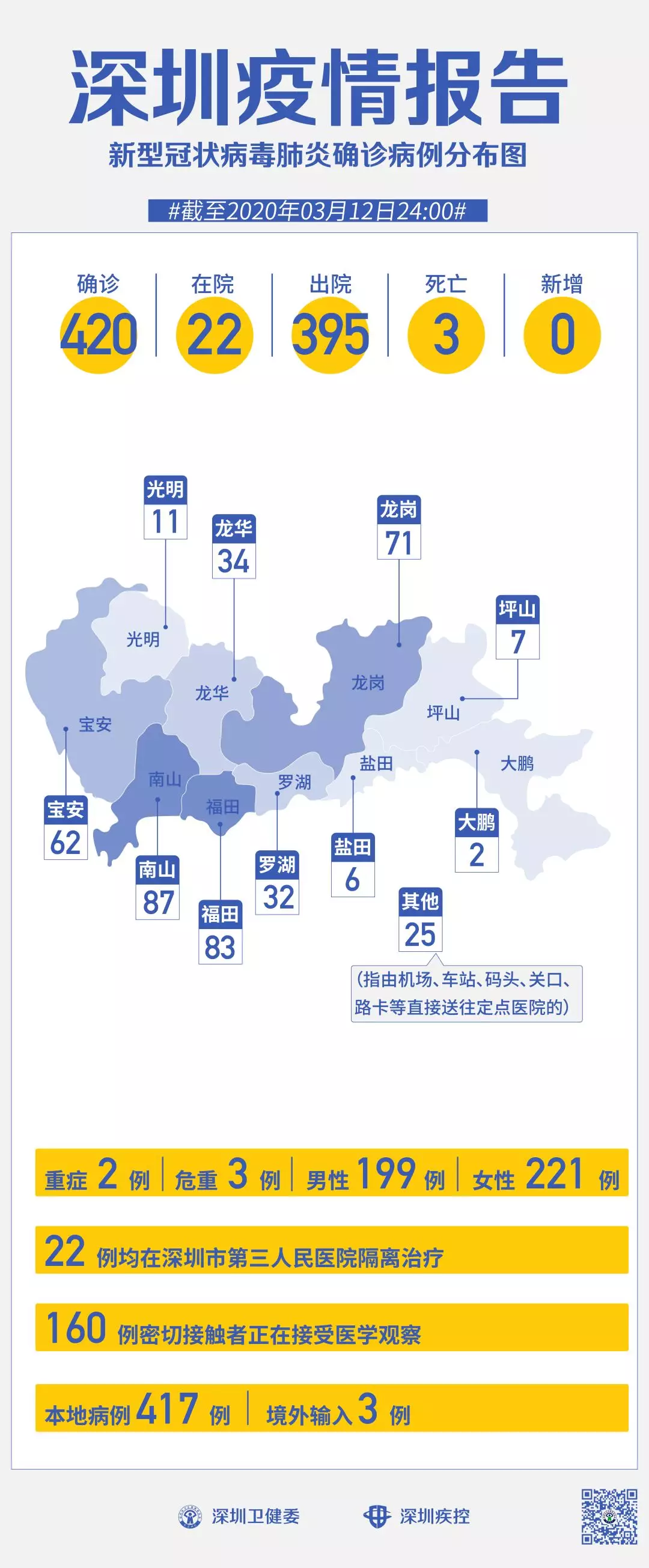 深圳“0”新增!累計420例,在院22例(截至3月12日)