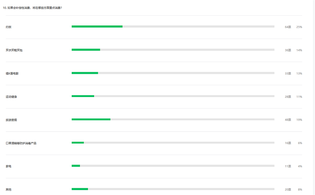 整體看,疫情對深圳市民總體消費(fèi)意愿有影響。調(diào)查顯示,近四成受訪者表示疫情結(jié)束后會有補(bǔ)償性消費(fèi),約飯、旅游度假、買衣買鞋買包、唱K看電影以及運(yùn)動健身成為疫情過后補(bǔ)償性消費(fèi)的五大主要領(lǐng)域。