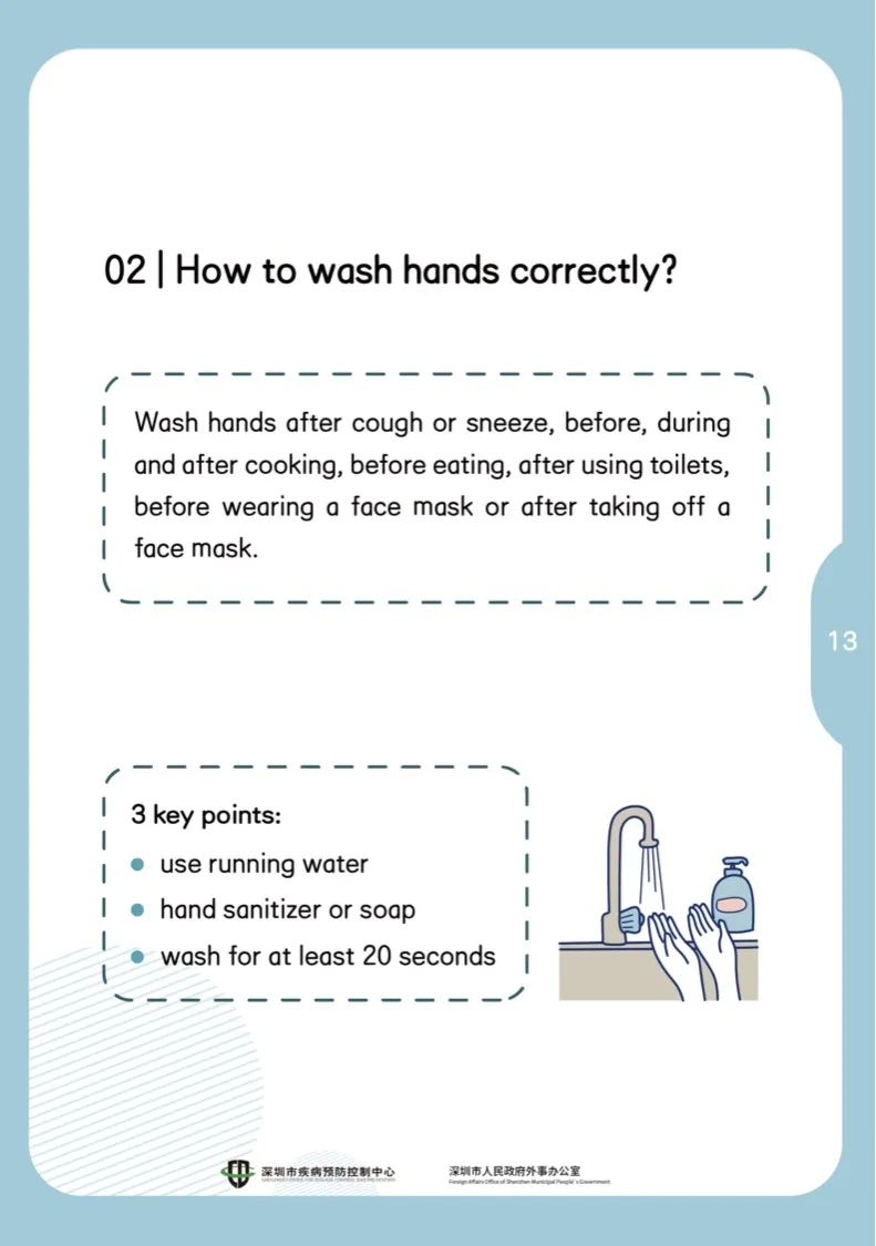 咳嗽或打噴嚏后,準(zhǔn)備食物前、中、后,餐前便后,戴口罩前和摘口罩后,都要記得洗手。三個(gè)關(guān)鍵點(diǎn):流動的水,使用洗手液或肥皂,洗夠20秒。