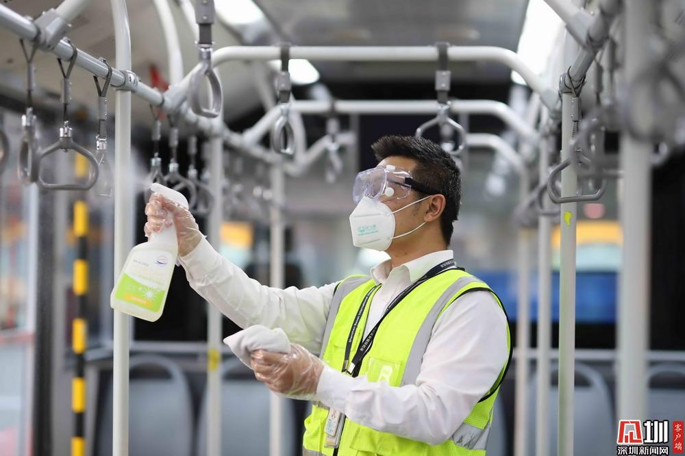 工作人員對機(jī)場擺渡車進(jìn)行消殺。