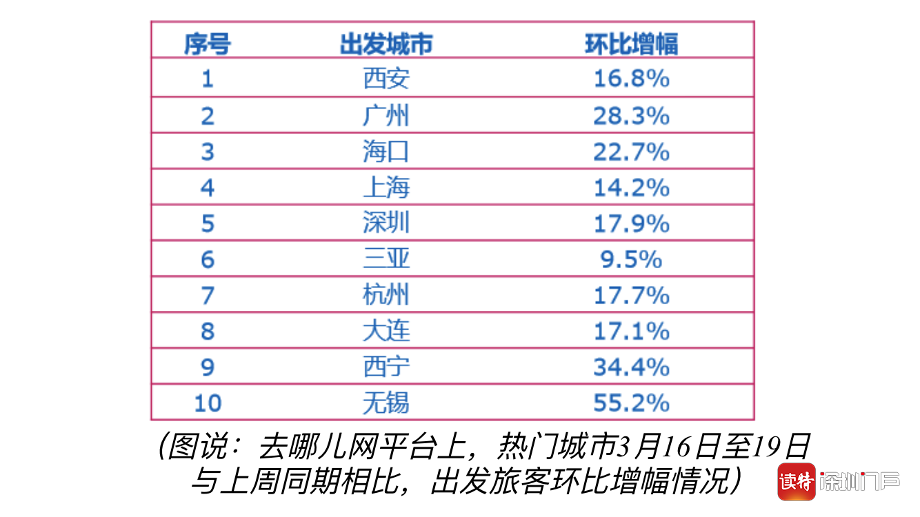 深圳特區(qū)報2020年3月19日訊 進入3月中旬,隨著各地有序復工復產,旅游行業(yè)也出現回暖跡象。去哪兒網數據顯示,本周五一假期搜索量環(huán)比上周增長76%。