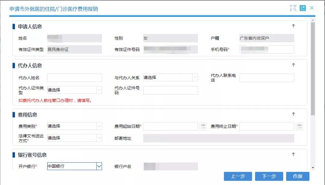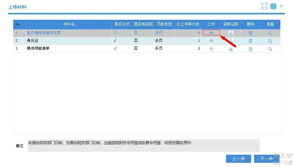 填寫信息上傳材料,如醫(yī)療費(fèi)用收據(jù)或發(fā)票、身份證、費(fèi)用明細(xì)清單等。(系統(tǒng)將自動比對參保情況、費(fèi)用發(fā)生時間、個人賬戶余額、基金額度等信息)