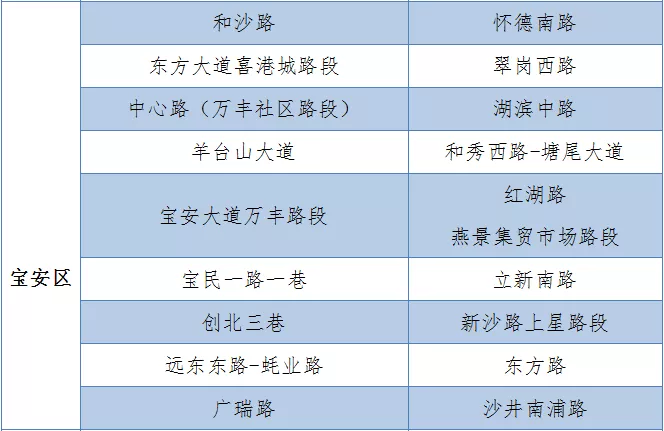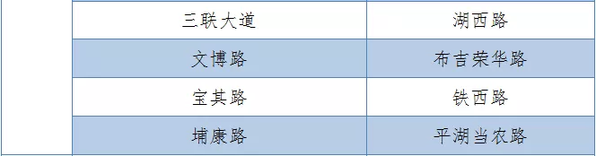 具體設(shè)置路段請(qǐng)看表格
