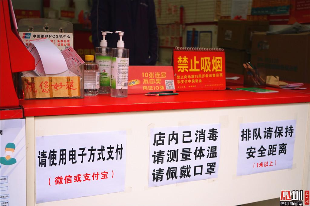 另一家在福田區(qū)華發(fā)北路,店號為83021044的投注站點,門口已經(jīng)被店員用桌子堵上,并貼上了相關防疫告示,“之前深圳福彩中心的工作人員來檢查過,后續(xù)也會給我們配送一些防護物資。”記者在此觀察了30分鐘,期間僅有兩位彩民前來,共購買了8元彩票。店主馬先生向記者介紹,“以前大家都會來店里邊坐,主要買的是20分鐘開兩次的‘快樂彩’,現(xiàn)在都不給進來,那個彩票也暫停銷售了?!?nbsp;