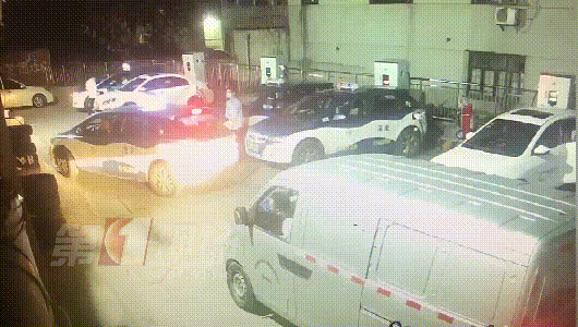 監(jiān)控畫面顯示,25日晚上23點(diǎn)左右,一輛出租車和一輛面包車先后到達(dá)龍崗大道木棉灣路段的一個(gè)充電站。出租車司機(jī)先找到了一個(gè)位置,準(zhǔn)備倒入充電時(shí),后面的面包車突然往前開(kāi),兩名司機(jī)因?yàn)橥\囄坏膯?wèn)題發(fā)生爭(zhēng)執(zhí)。隨后,出租車司機(jī)下車?yán)碚摚瑒?dòng)手推搡了面包車司機(jī)一下。