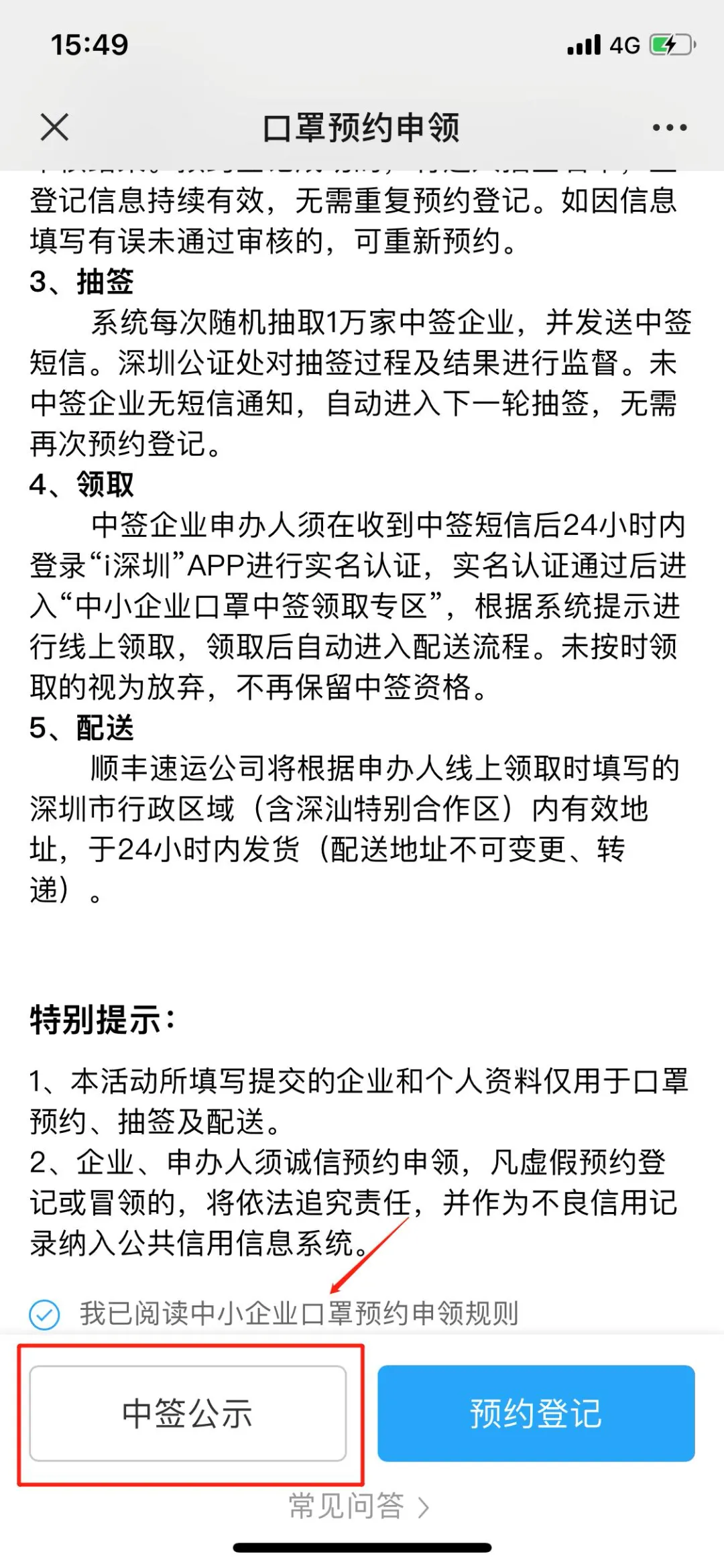 企業(yè)中簽名單:在“i深圳”微信公眾號首頁-口罩預(yù)約-中小企業(yè)專區(qū)頁面的下方“中簽公示”查看