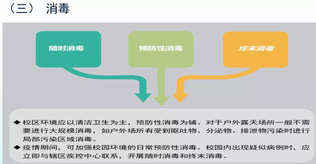 二是實施校園封閉式管理。做好校園衛(wèi)生整治、“四害”消殺和重點場所的預(yù)防性消毒。設(shè)置相對獨(dú)立的健康觀察區(qū)(室)、設(shè)置洗手設(shè)施、儲備足夠的防護(hù)用品等措施。