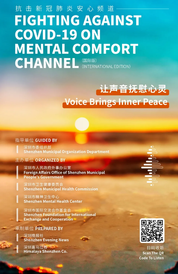 在疫情面前,每一份信念都意義重大,每一個希望都影響深遠(yuǎn)。4月11日,抗擊新冠肺炎安心頻道(國際版)在喜馬拉雅 APP正式上線。該欄目在深圳市委組織部的指導(dǎo)下,由深圳市外辦攜手深圳市衛(wèi)健委、深圳市精神衛(wèi)生中心、深圳市國際交流合作基金會聯(lián)合出品,由深圳晚報和深圳喜馬拉雅共同承制。據(jù)悉,抗擊新冠肺炎安心頻道(國際版)是深圳市外辦首次聯(lián)合多部門協(xié)作,共同出品的全英文音頻欄目,也是繼"抗擊新型肺炎安心手冊音頻版"推出以來的又一大創(chuàng)新。該欄目的推出體現(xiàn)了深圳對中外居民的人文關(guān)懷,也展現(xiàn)了深圳作為國際化城市的溫暖大愛。