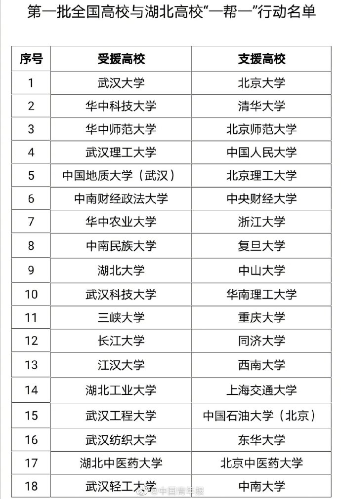下面是部分幫扶高校名單↓↓↓↓