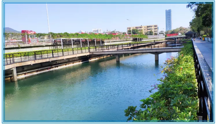 深圳水庫排洪河始于深圳水庫壩下,終點(diǎn)至深圳河,河道總長(zhǎng)3.86千米,流域面積68.52平方千米。深圳水庫排洪河上游段建設(shè)成為自然和諧的“生態(tài)公園”,下游段建設(shè)成為人水共生的“濱海社區(qū)公園”。