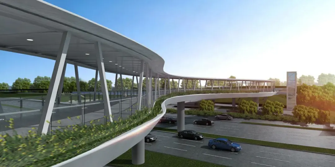 跨越南山區(qū)沙河西路,西接大沖片區(qū),東接沙河西生態(tài)長廊,橋長約113米,橋面凈寬約4.3米,主橋共4跨。天橋設(shè)計容景觀、造型、燈光、周邊環(huán)境于一體,設(shè)置無障礙觀光電梯,采用鋼箱梁及花崗巖面磚鋪裝、綠化自動滴灌等。天橋的建設(shè)將大大縮短居民繞行時間,對完善周邊居民出行環(huán)境具有重要意義。