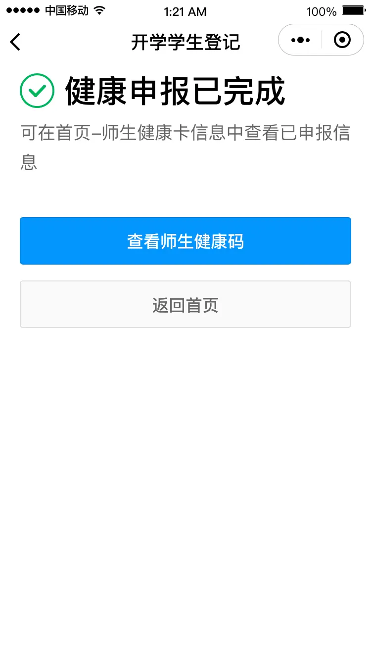 若不符合返校條件,需在符合條件后,點擊“重新生成健康卡”再次申報。
