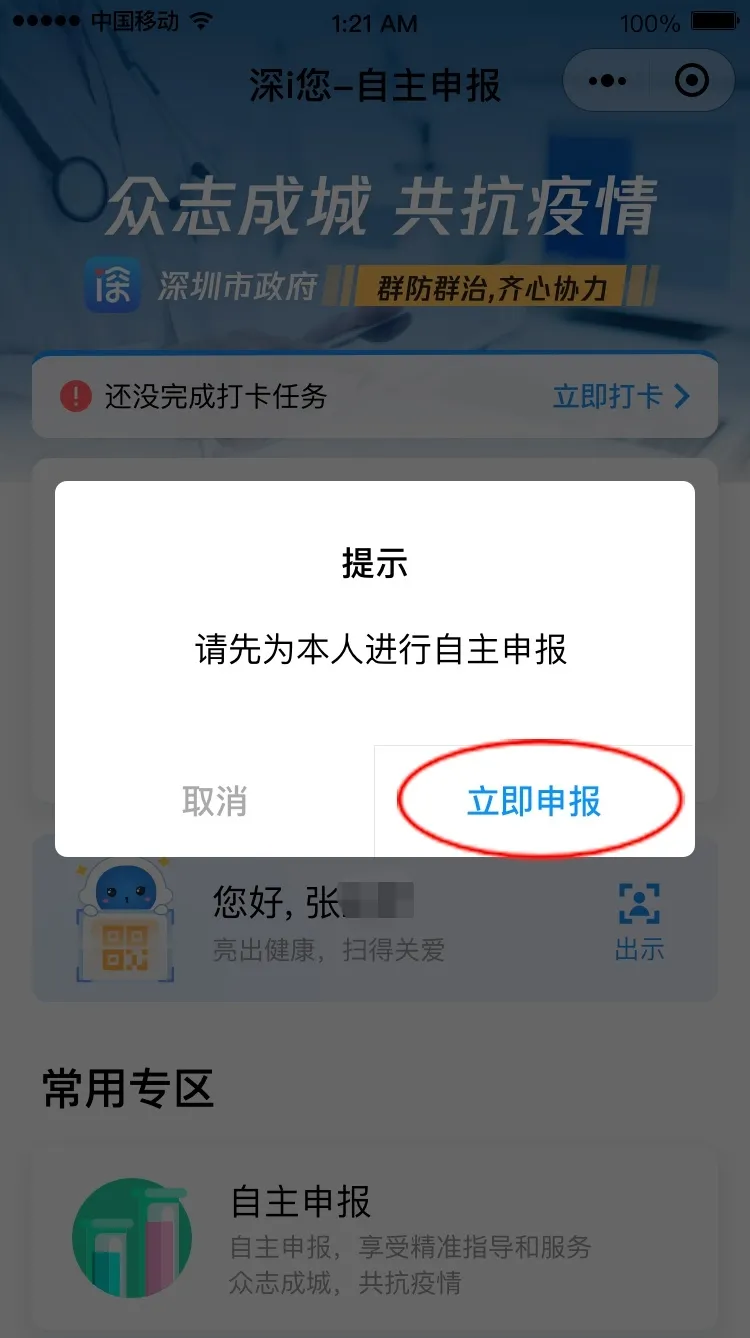 請根據(jù)實際情況完成健康信息申報,包括選擇家庭住址、填寫所在部門、申報健康情況。
