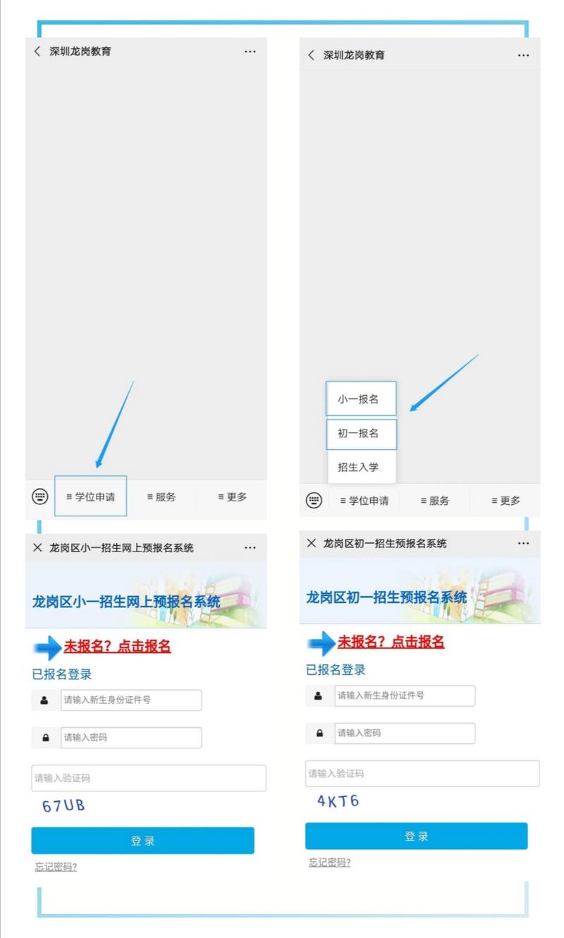 和以往一樣,家長(zhǎng)可以登錄龍崗政府在線網(wǎng)站的“龍崗區(qū)教育局基礎(chǔ)教育科”頁面(http://www.lg.gov.cn/bmzz/zs/)進(jìn)行學(xué)位申請(qǐng)報(bào)名,不過今年,家長(zhǎng)多了一個(gè)更加便捷的報(bào)名方式,通過關(guān)注“深圳龍崗教育” 微信公眾號(hào),在“學(xué)位申請(qǐng)”欄目中點(diǎn)擊“小初一報(bào)名”,憑適齡兒童、少年身份證號(hào)進(jìn)入,填寫學(xué)位申請(qǐng)信息,填報(bào)學(xué)校志愿。確認(rèn)信息無誤后直接保存,同時(shí)產(chǎn)生申請(qǐng)學(xué)位的流水號(hào),即完成網(wǎng)上預(yù)報(bào)名。