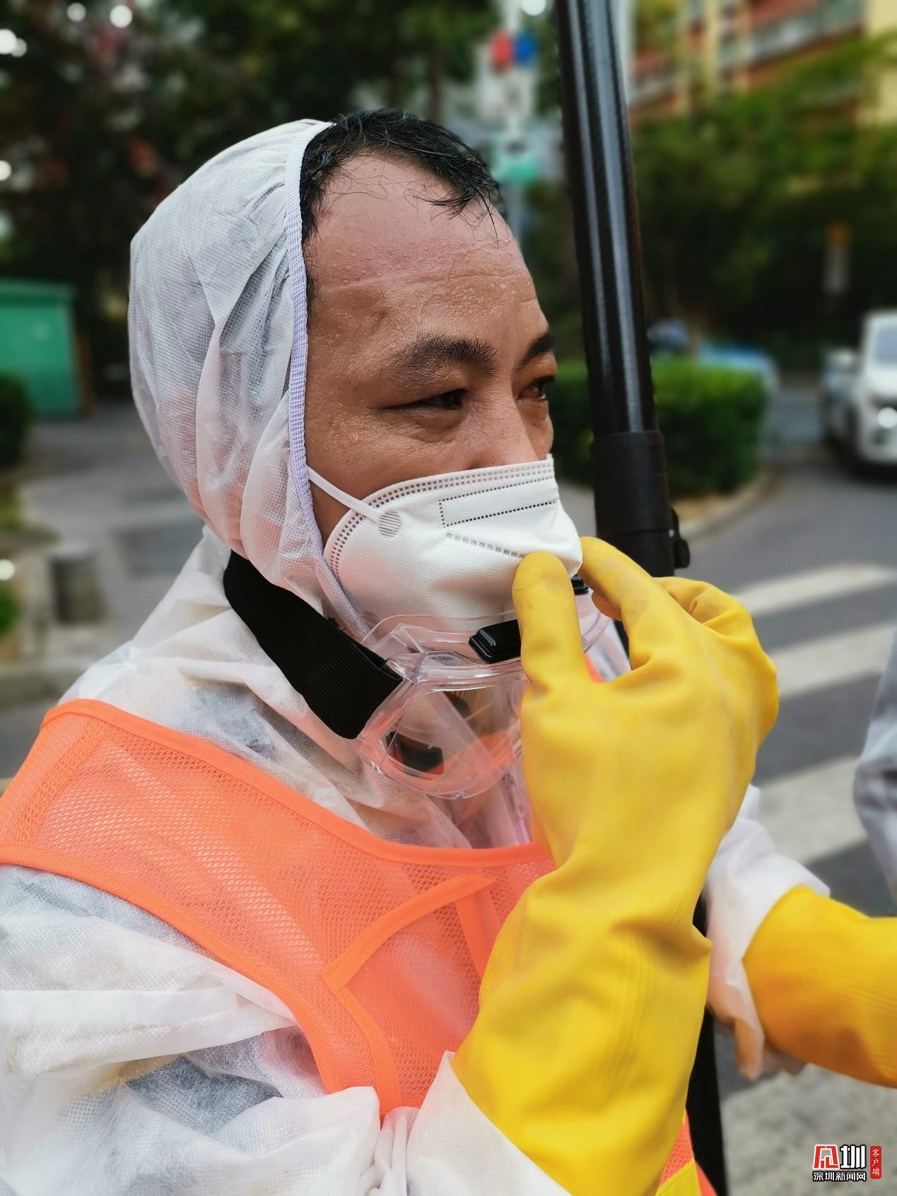 福田分公司管網(wǎng)工程師何勝平,疫情期間深入坂田街道“健康驛站”小區(qū)檢查排水管網(wǎng),經(jīng)一天辛勤勞作后,衣衫濕透,滿臉汗水。