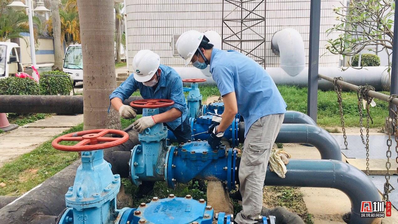 福田分公司管網(wǎng)技術(shù)工程師羅雪明、賴彬和陳嘉澍,正檢查中水閥門是否開啟。