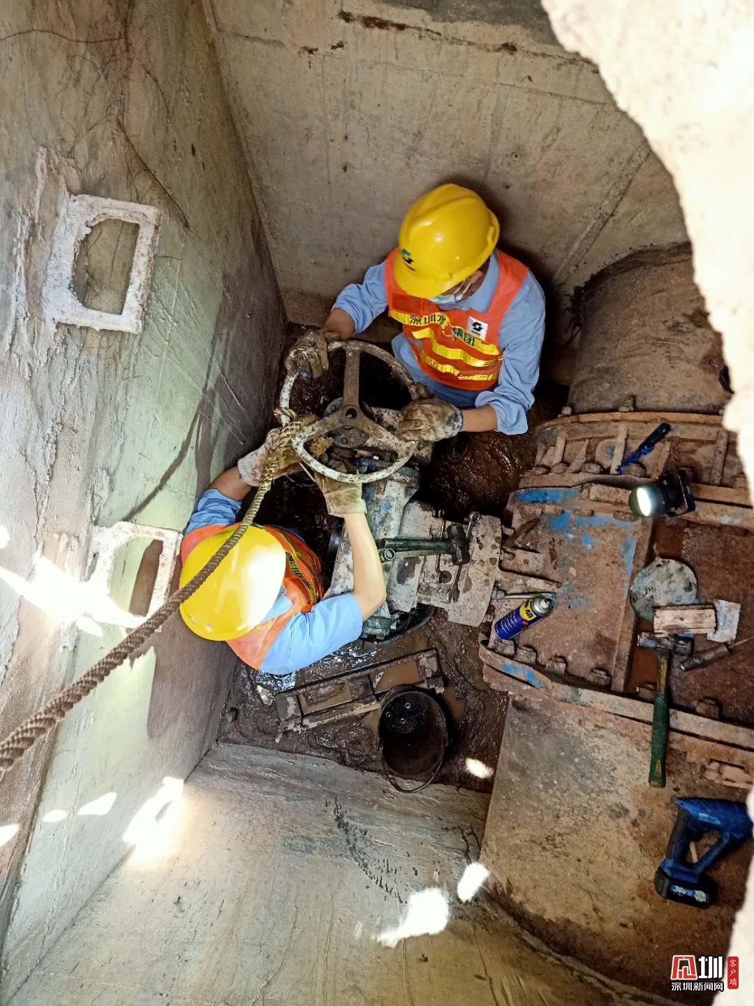 閥門檢測及維修分公司維修工何水懷和黃伯良,正緊急更換閥門。