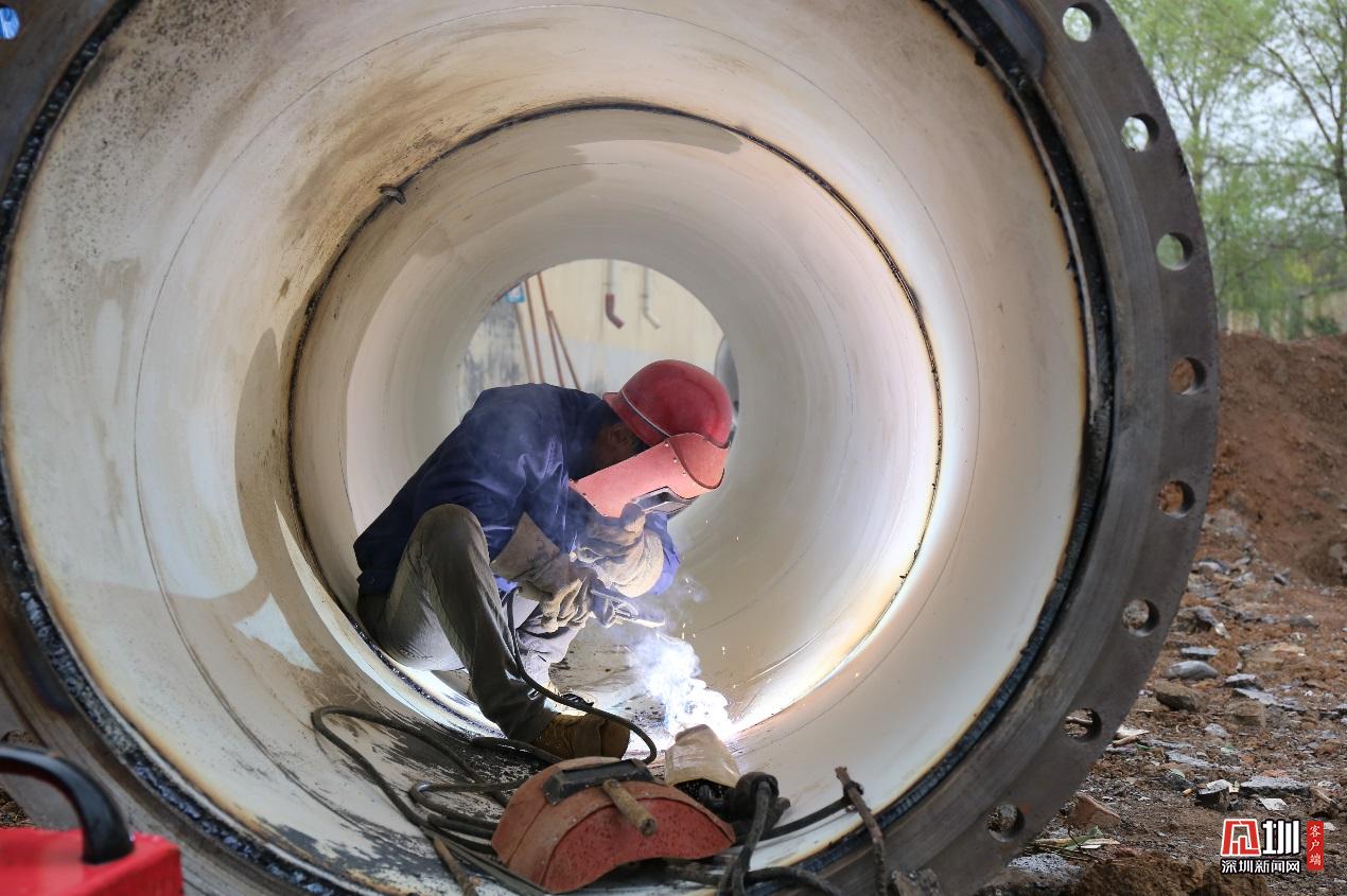 焦作水務公司電焊工申強,正對府城水廠配套新城加壓站 DN1200管道進行工藝焊接。