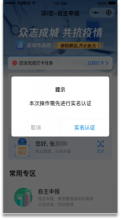 ①在首頁(yè)開(kāi)學(xué)專(zhuān)區(qū)點(diǎn)擊“學(xué)生登記”,若家長(zhǎng)之前未進(jìn)行自主申報(bào)和實(shí)名認(rèn)證,系統(tǒng)將彈出提示,請(qǐng)家長(zhǎng)本人先完成自主申報(bào)和實(shí)名認(rèn)證。