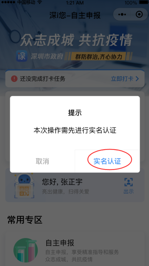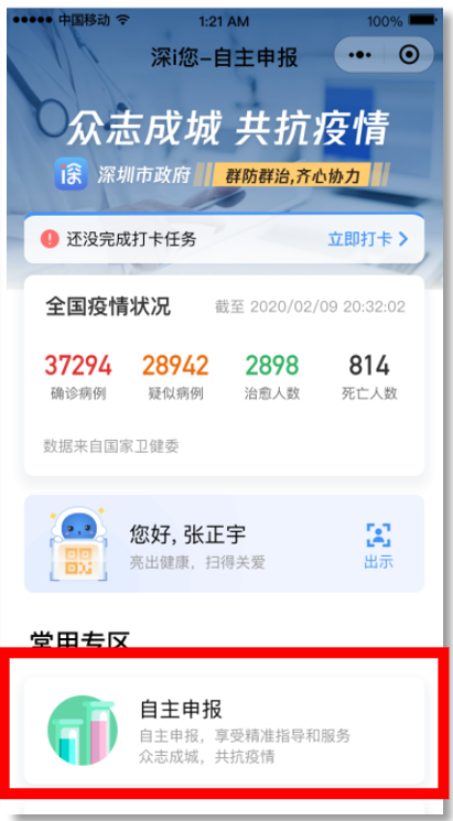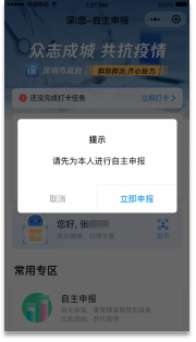 第二步:點(diǎn)擊底部菜單欄“健康申報(bào)”-“深i您”進(jìn)入申報(bào)系統(tǒng)。