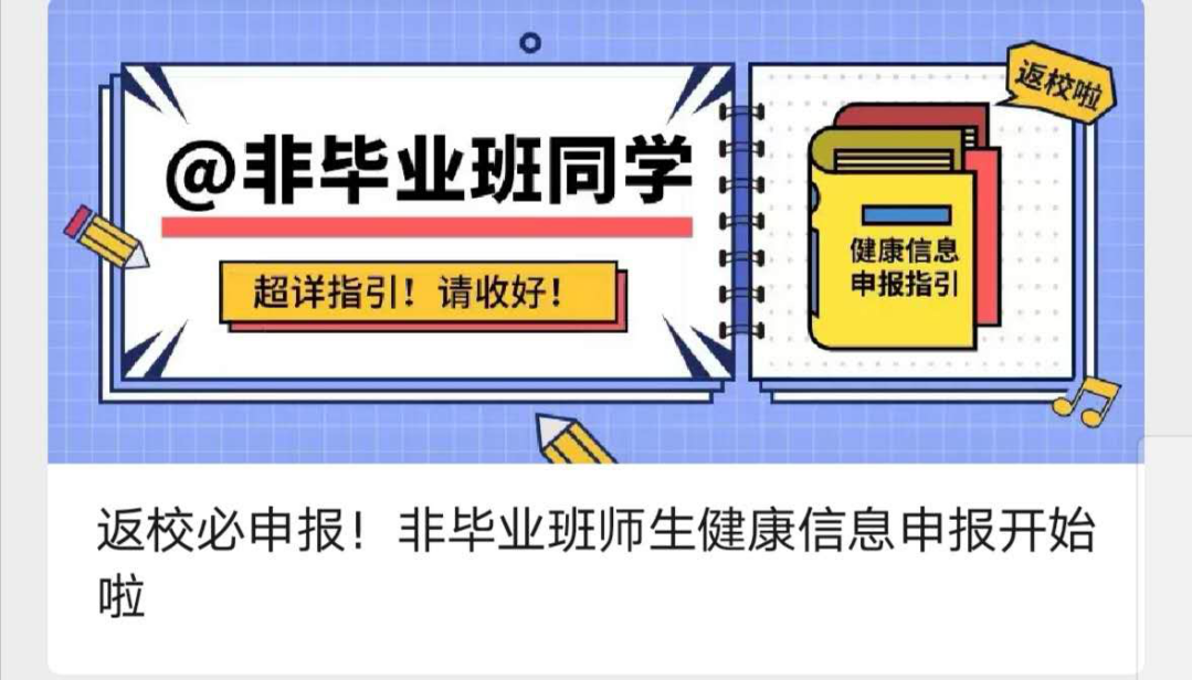 市教育局溫馨提示,學(xué)校將根據(jù)健康申報(bào)的情況確定返校師生員工的名單。所以一定要如實(shí)、準(zhǔn)時(shí)申報(bào)以免影響返校。