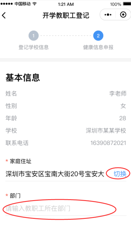 ①在首頁開學(xué)專區(qū),點(diǎn)擊“教職工登記”進(jìn)入申報(bào)人員列表,進(jìn)行自主申報(bào)和實(shí)名認(rèn)證。