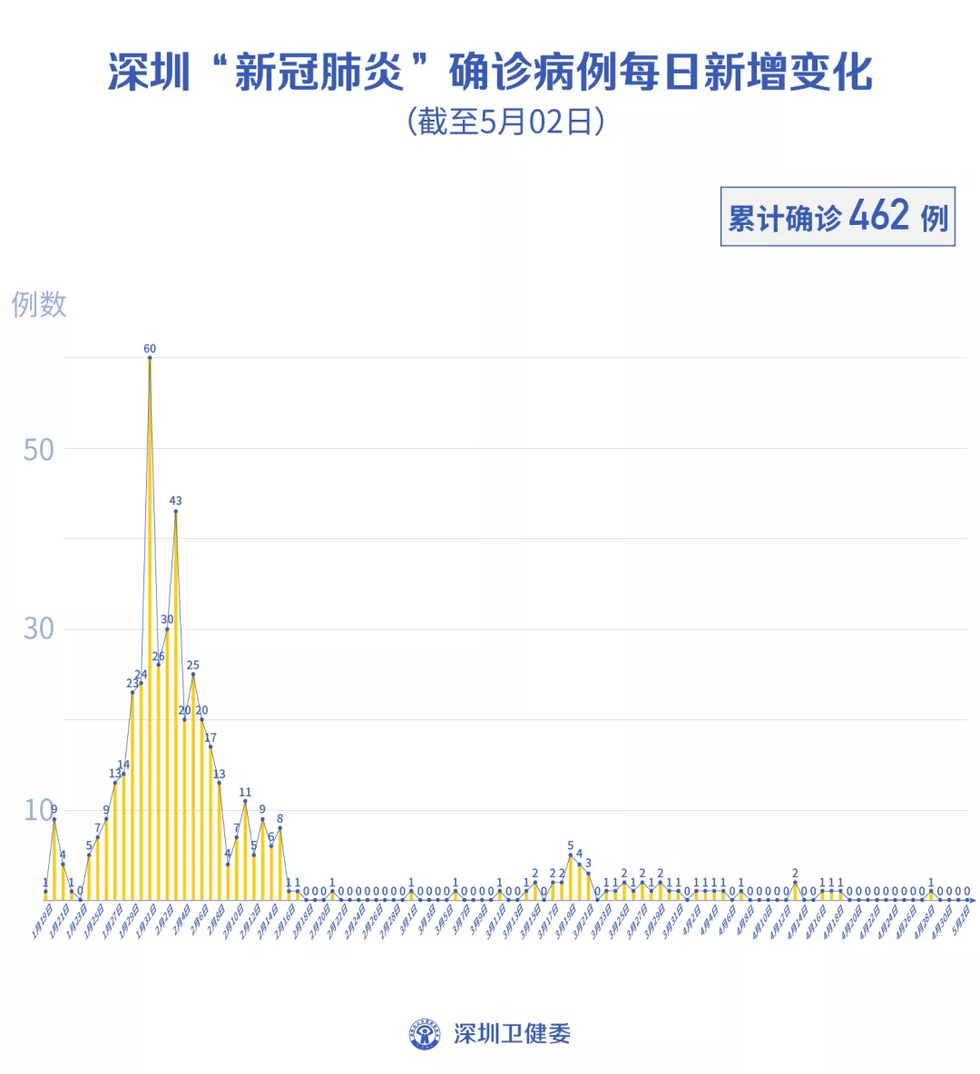 截至5月2日24時,深圳累計報告新冠肺炎病例462例。