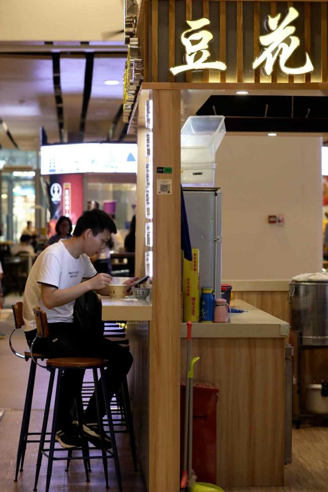 ▲不少市民選擇在商場(chǎng)吹空調(diào)休憩。
