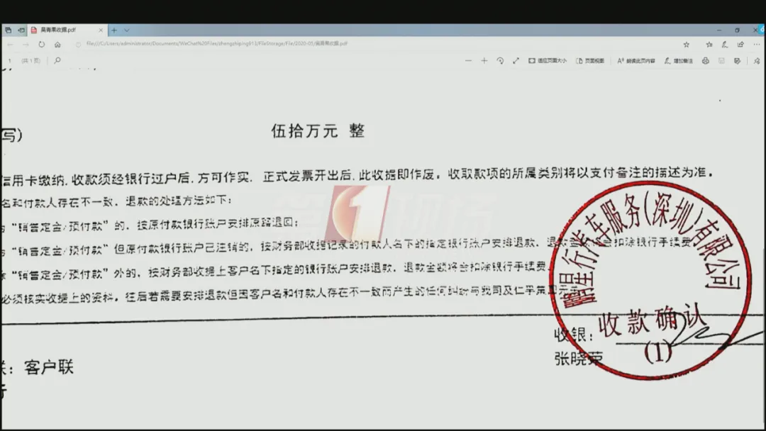 我是在你的4s店里購車,是你的員工用POS機刷的卡,是你們車行名字的收據(jù),然后也給我們50萬的收據(jù),上面也有他們車行的收款專用章,跟我們之前定金的收據(jù)都是一樣。