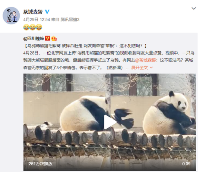 一周冰紛播|哈哈!烏鴉逮著熊貓薅毛遭網(wǎng)友舉報(bào) 森警回應(yīng):管不了