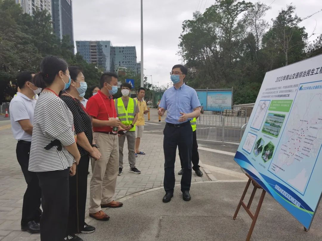 ▲體驗結(jié)束后,在調(diào)研現(xiàn)場,深圳市交通運輸局南山管理局相關(guān)負責人向區(qū)人大代表們講解今年南山交通綜治民生工程。消息報記者肖佩攝