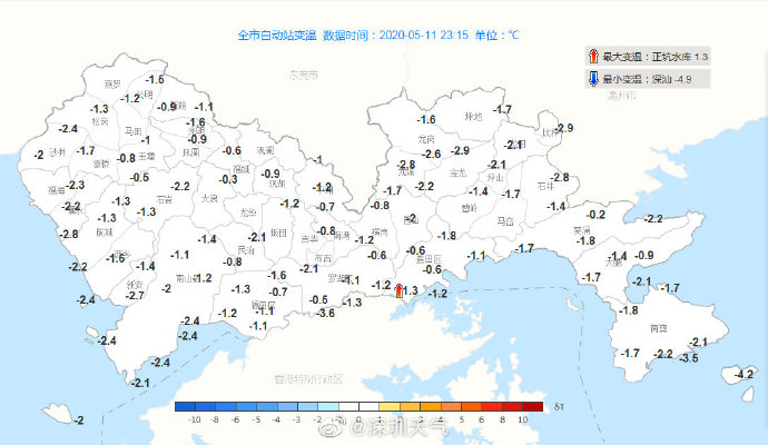 22時11分:強降雨已經影響到鹽田和大鵬地區(qū),西部地區(qū)雖然雨勢減弱,但還將持續(xù)1-2小時,請大家睡前關好門窗。