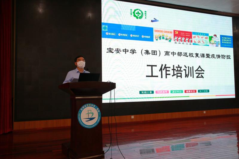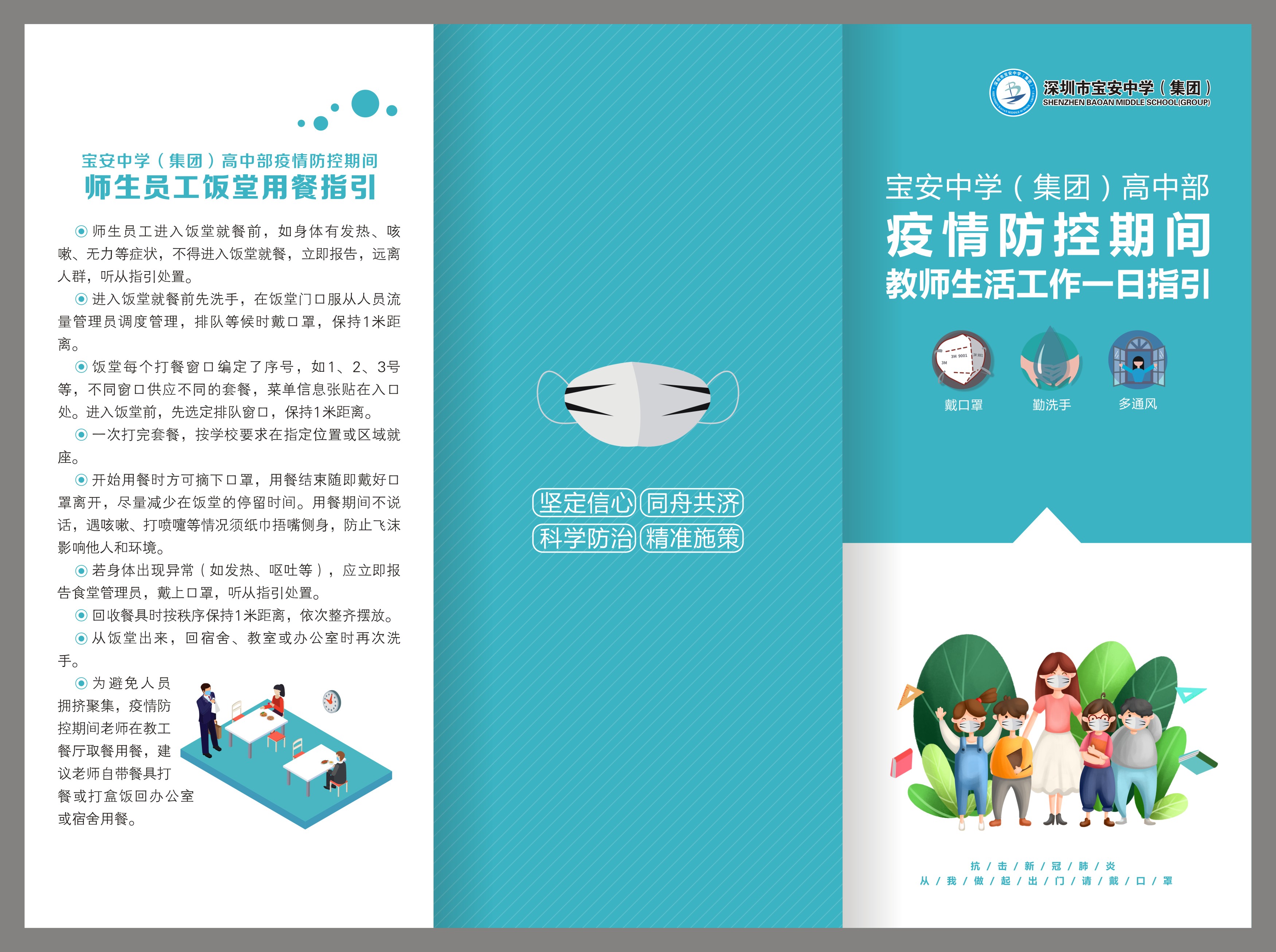 早在3月,返校復(fù)課的相關(guān)準(zhǔn)備工作就已經(jīng)在緊鑼密鼓地推進(jìn)中。為了規(guī)范師生返校復(fù)課各項措施和要求,在深圳市教育局發(fā)布復(fù)課防控疫情工作指引之前,彭鍛華就結(jié)合疫情形勢變化與學(xué)校實際,提出制定寶中集團(tuán)的《學(xué)生學(xué)習(xí)生活一日指引》《教師工作生活一日指引》,對在校師生每天各個 時段 、各個 地點 的學(xué)習(xí)、工作和生活做出了明確指引。
