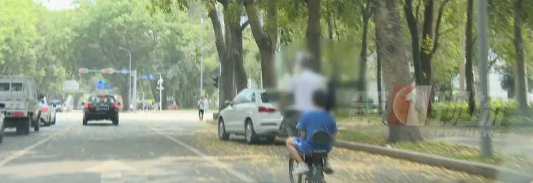 5月12日下午,在南山外國語學(xué)校科苑小學(xué)與南山外國語學(xué)校中間路段,一位老人騎電單車,載著一名小學(xué)女生,沿著高新南環(huán)路由西往東方向行駛。