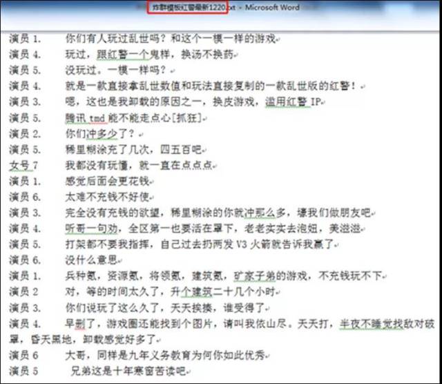 在“炸群”過(guò)程中,員工扮演不同角色,按照話術(shù)本,在群里給小劉這些真實(shí)玩家上演了一出出“炸群”大戲。