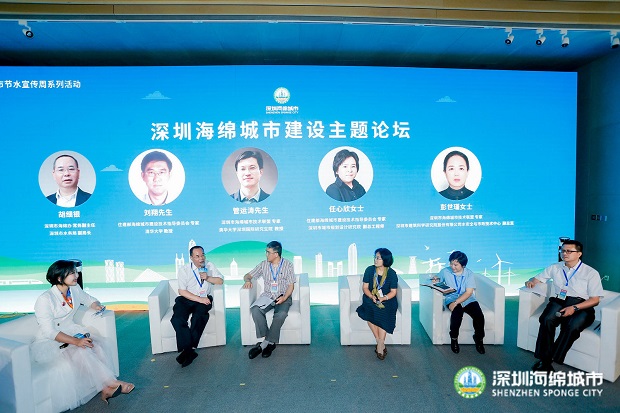 在活動的最后,深圳市海綿城市建設(shè)工作領(lǐng)導(dǎo)小組辦公室常務(wù)副主任胡細(xì)銀、清華大學(xué)教授劉翔、深圳市城市規(guī)劃設(shè)計研究院副總工程師任心欣、清華大學(xué)深圳國際研究生院教授管運(yùn)濤以及深圳市建筑科學(xué)研究院股份有限公司水安全與市政技術(shù)副總監(jiān)彭世謹(jǐn)為大家?guī)砹酥黝}為“深圳海綿城市建設(shè)系統(tǒng)化全域推進(jìn)展望”的分享。