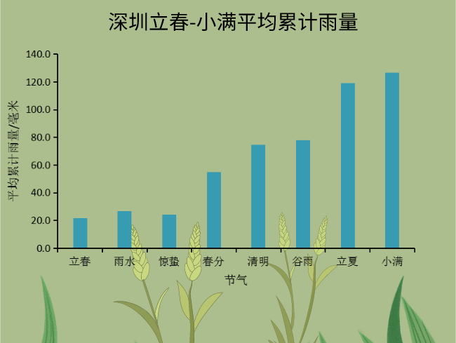 小滿節(jié)氣,除了氣溫不斷地攀升,雨水也逐漸增多。伴隨著南海夏季風(fēng)的爆發(fā),所謂小滿大滿,江河水滿,意思是小滿節(jié)氣強降水過程頻繁,間隔時間短,經(jīng)常一波接一波。進(jìn)入小滿節(jié)氣后,深圳也進(jìn)入了一年一度的“龍舟水”時期。此時南方的暖濕氣流活躍,與北方南下的冷空氣交匯,往往會出現(xiàn)持續(xù)大范圍的強降水。氣象統(tǒng)計數(shù)據(jù)顯示,小滿節(jié)氣后15天深圳平均累計雨量為126.9毫米,比之前的立夏時節(jié)降水更加豐沛。