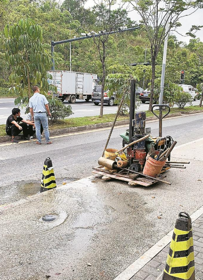 2020年5月1日,執(zhí)法支隊(duì)龍崗大隊(duì)執(zhí)法人員在轄區(qū)內(nèi)值班巡查時(shí),接到投訴稱(chēng)愛(ài)南路上海外國(guó)語(yǔ)學(xué)校門(mén)口有道路施工人員鉆探時(shí)鉆破水管,現(xiàn)場(chǎng)水流滿(mǎn)地,請(qǐng)求執(zhí)法人員前往調(diào)查。