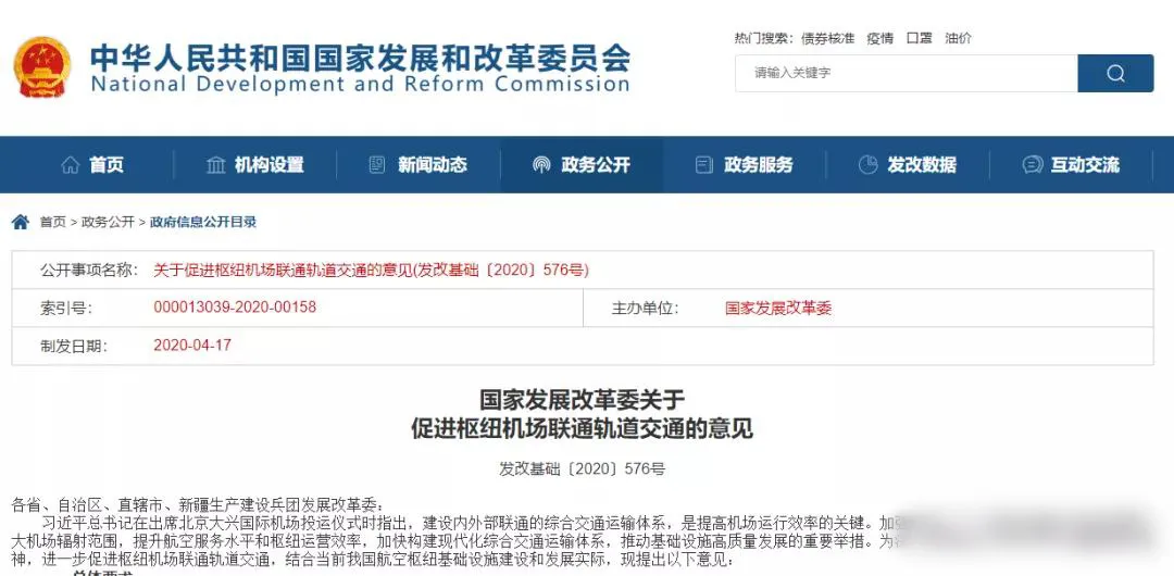今年4月,國(guó)家發(fā)展改革委發(fā)布促進(jìn)樞紐機(jī)場(chǎng)聯(lián)通軌道交通的意見(jiàn),要求加強(qiáng)樞紐機(jī)場(chǎng)與軌道交通的互聯(lián)互通,提升航空服務(wù)水平和樞紐運(yùn)營(yíng)效率,加快構(gòu)建現(xiàn)代化綜合交通運(yùn)輸體系。