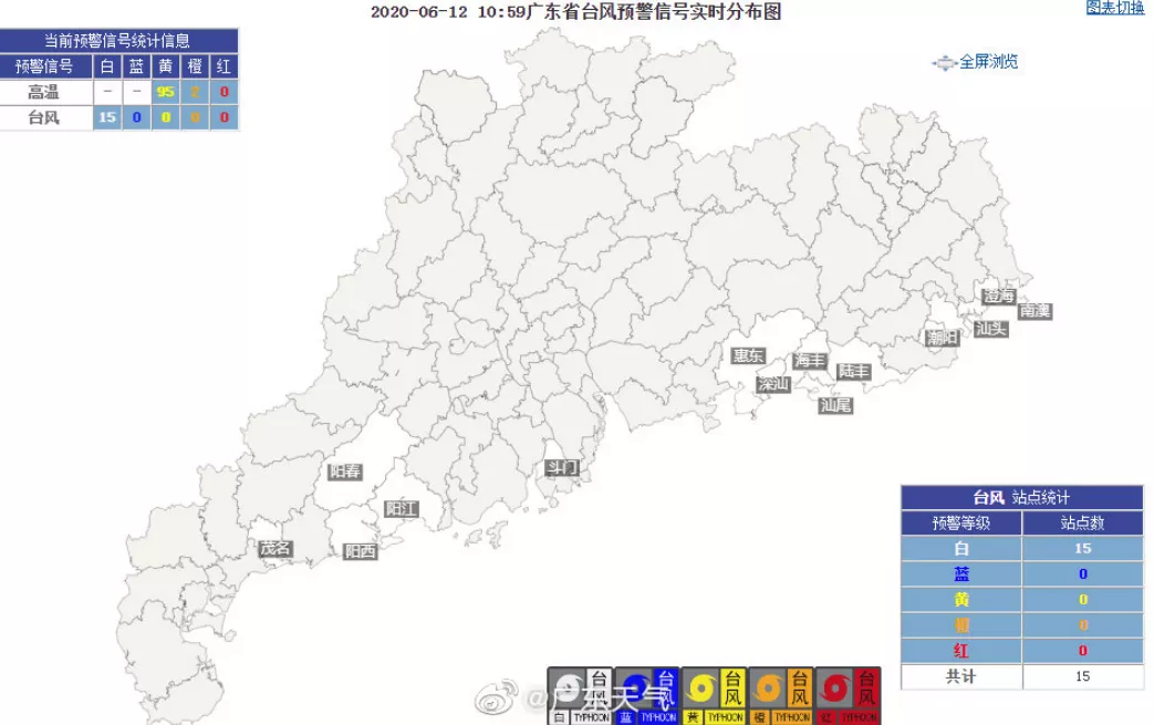 廣東省氣象局6月12日10時啟動重大氣象災(zāi)害(臺風(fēng))三級應(yīng)急響應(yīng)。目前,廣東沿海陸陸續(xù)續(xù)臺風(fēng)白色預(yù)警信號都在亮起,深圳在2020年6月12日12時發(fā)布臺風(fēng)白色預(yù)警。